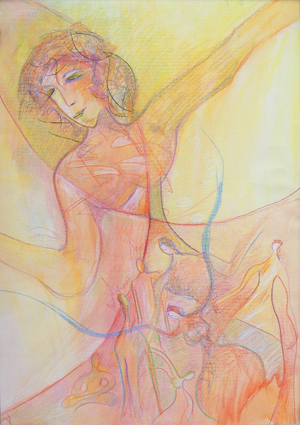 "Frau expressionistisch", Aquarell, A3, 2008, Detail 1, Detail 2